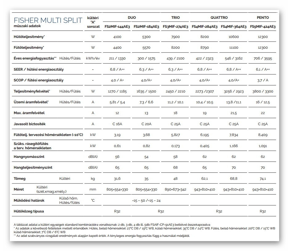 A Fisher FS2MIF-184AE3 Multi klíma kültéri egység (max. 2 beltéri egységhez) fontos tulajdonságai: