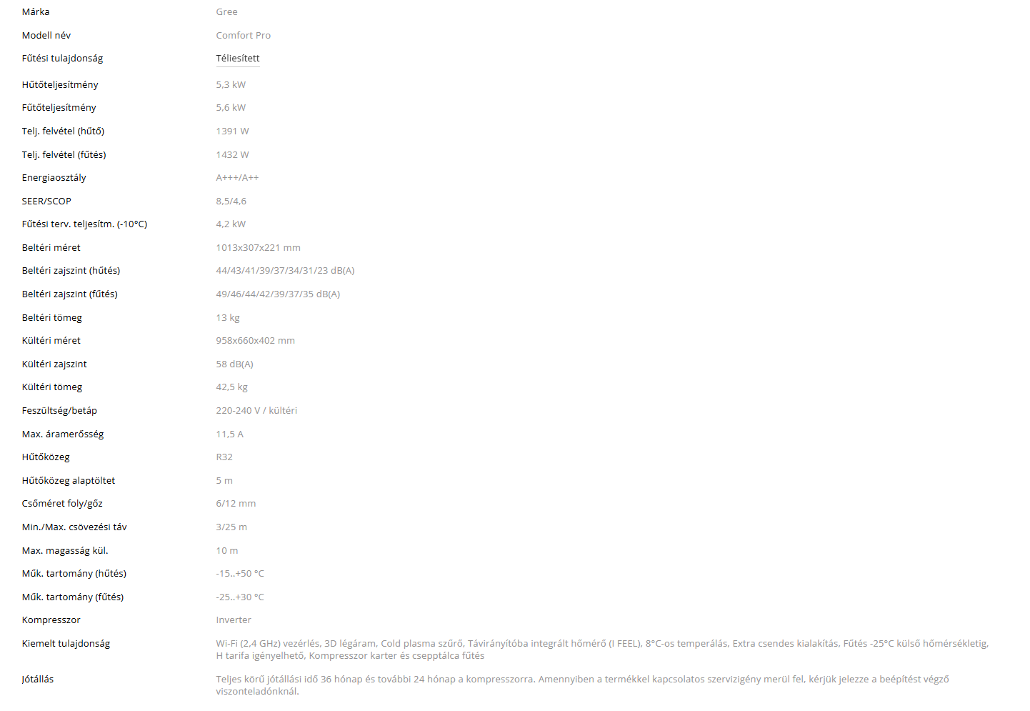 Felszerelés és beüzemelés díja bruttó 55.000 Ft, mely tartalmazza a kiszállást, a készülék helyszínre szállítását, a kültéri és beltéri egység felszerelését, elektromos betáp kiépítését aljzatba max. 5 méterig*, a kültéri tartókonzolt, rögzítő elemeket, a vákuumozást, a berendezés beüzemelését és azzal kapcsolatos dokumentumok kitöltését (pl.: beüzemelési jegyzőkönyv, garanciajegy...), valamint a takarítást.